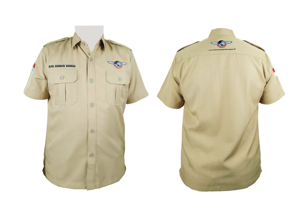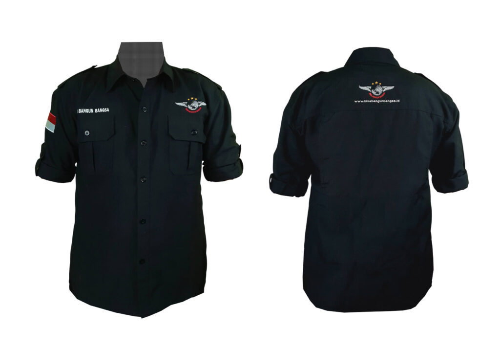 Jahitan rapih berkualitas, dipakai rapih dan keren. Terdapat 2 saku di bagian depan baju. Pundak model pangkat.